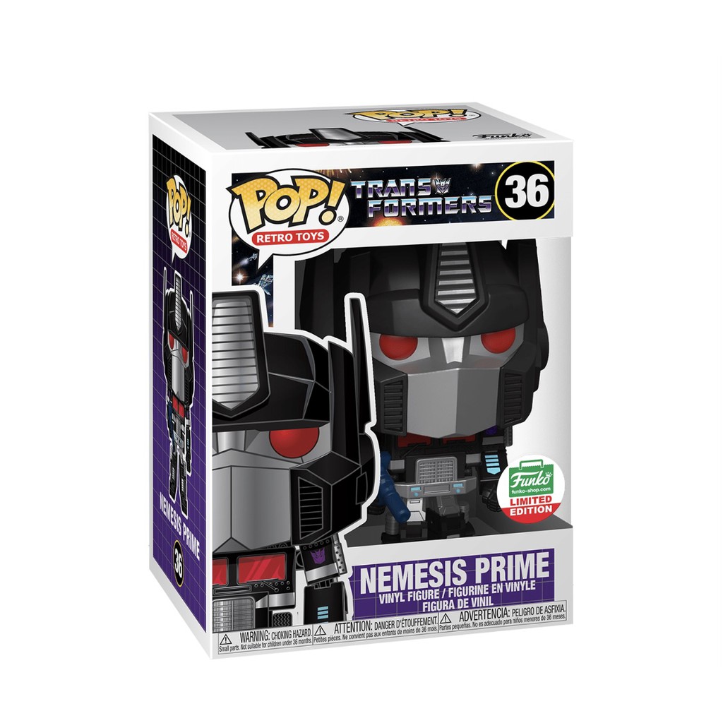 Alternate Mode the iconic Freightliner FL86 cab over semi truck. Funko Nemesis Prime 36 - Funko-Shop Exclusive - Transformers - Retro Toys. Evolution Nemesis Prime. Tamanho 10 cm de altura. The Nemesis Prime Premium Collectibles statue features. Comes with free 45MM Good Quality Pop Protector. The human -manufactured robot known as Nemesis Prime is a mindless drone created by MECH controlled remotely by a human operator. Painted plastic non-scale fully articulated figure with stand included. It will be a Funko Shop exclusive and it will go up for order today at 1100 AM Pacific time while supplies last.